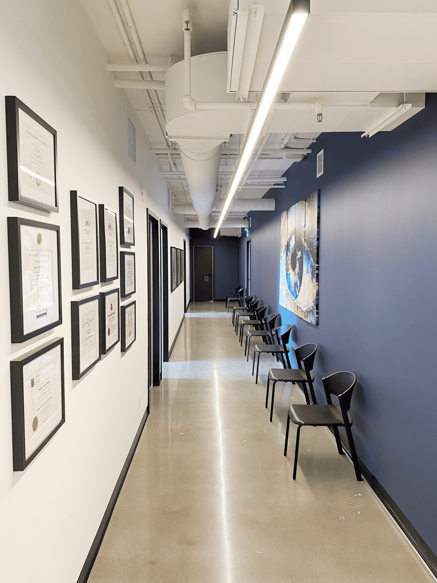 Pour le déménagement et agrandissement de la Clinique Ophtalmo MTL, nous avons pensé à créer un espace ouvert à l’allure contemporaine.