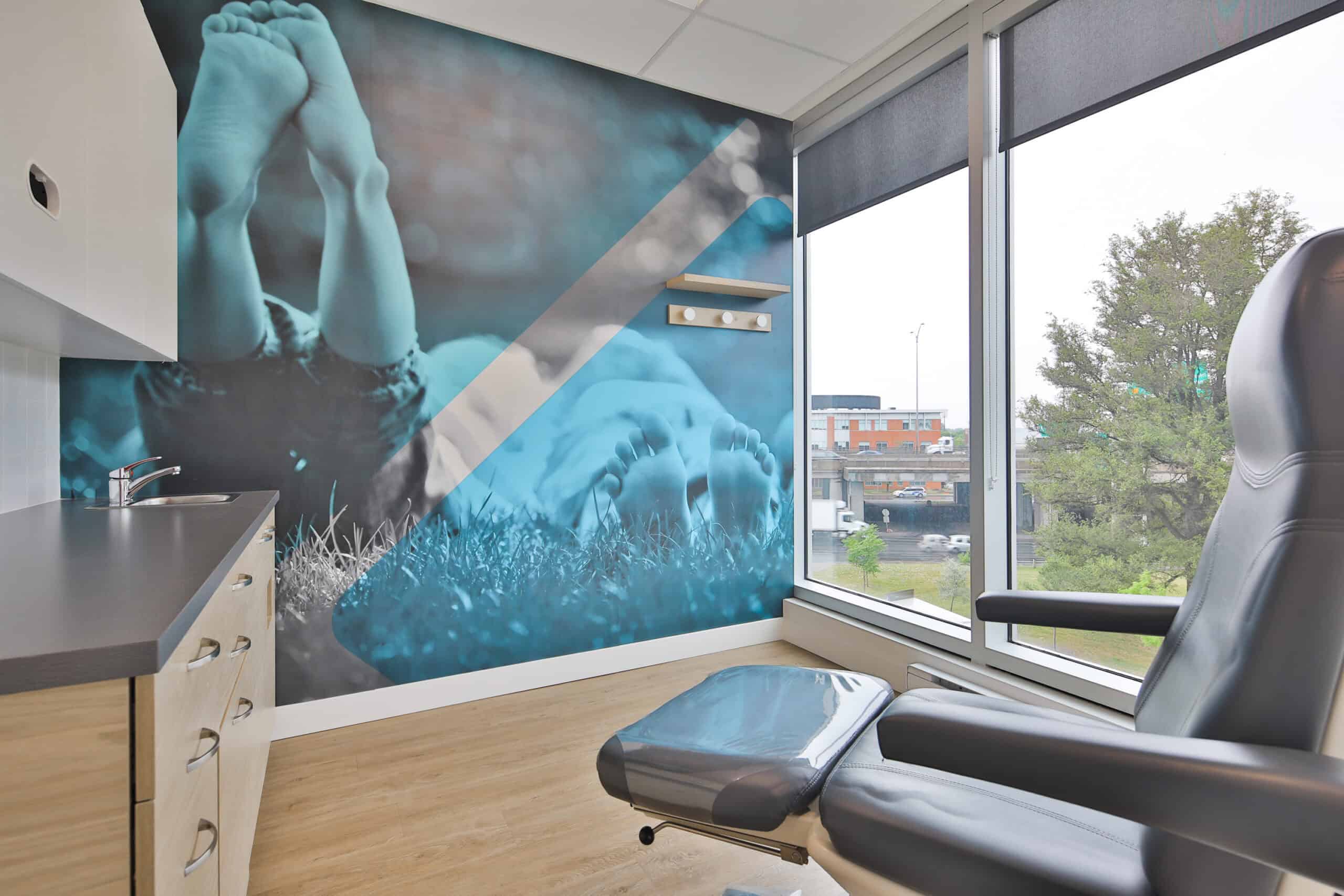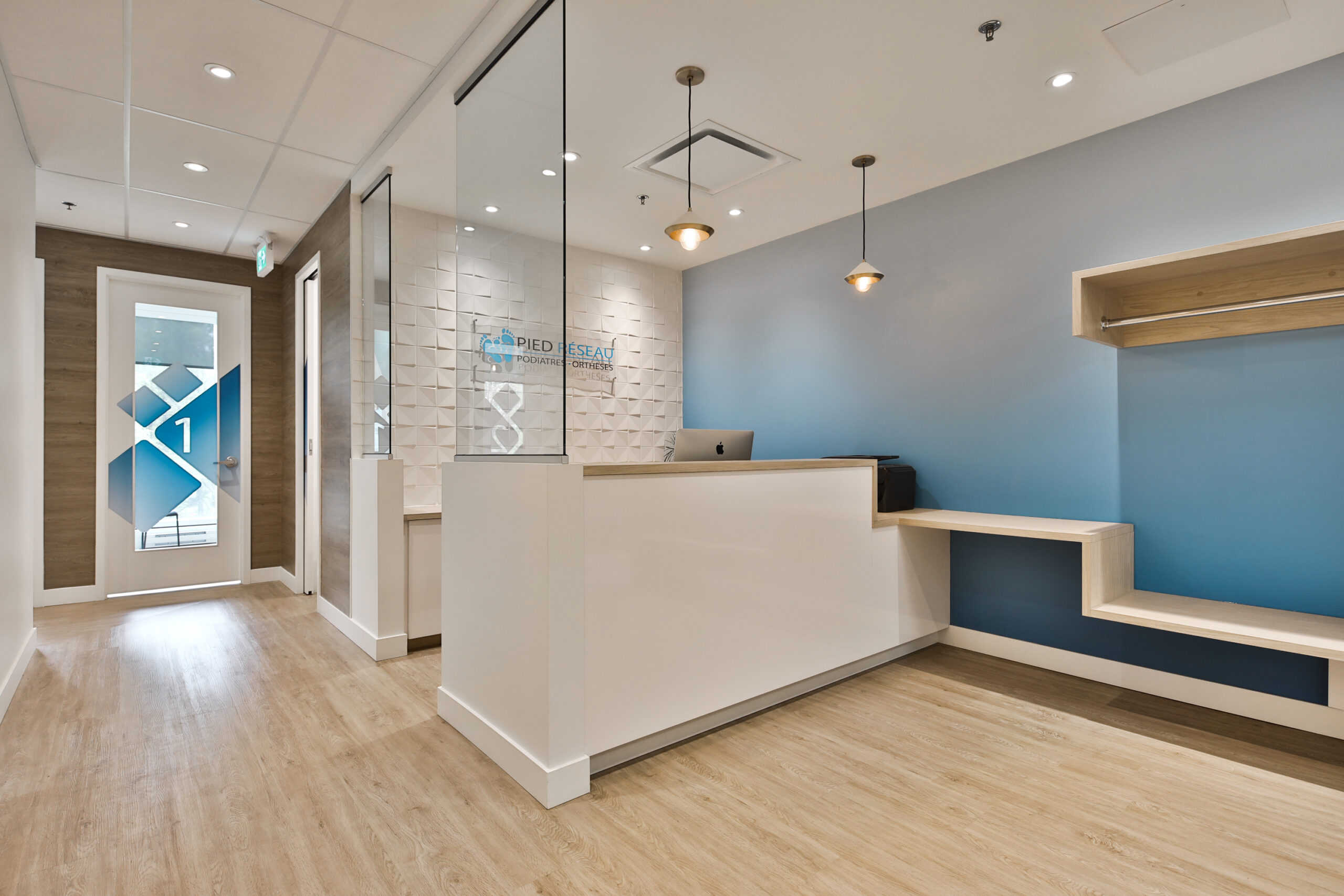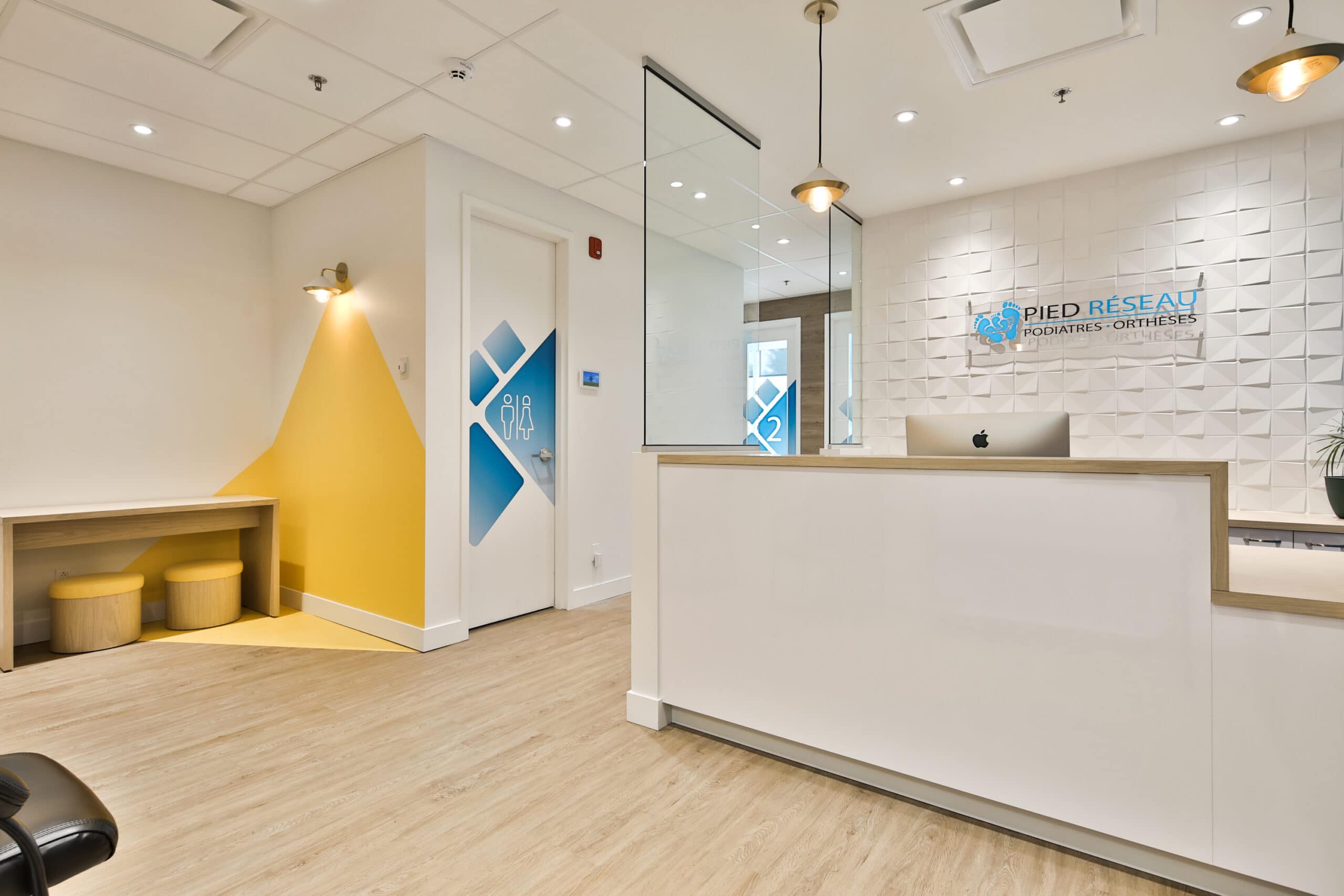 Le design d’intérieur de la clinique Podiatrique PiedRéseau de Villeray se veut être léger et élégant.