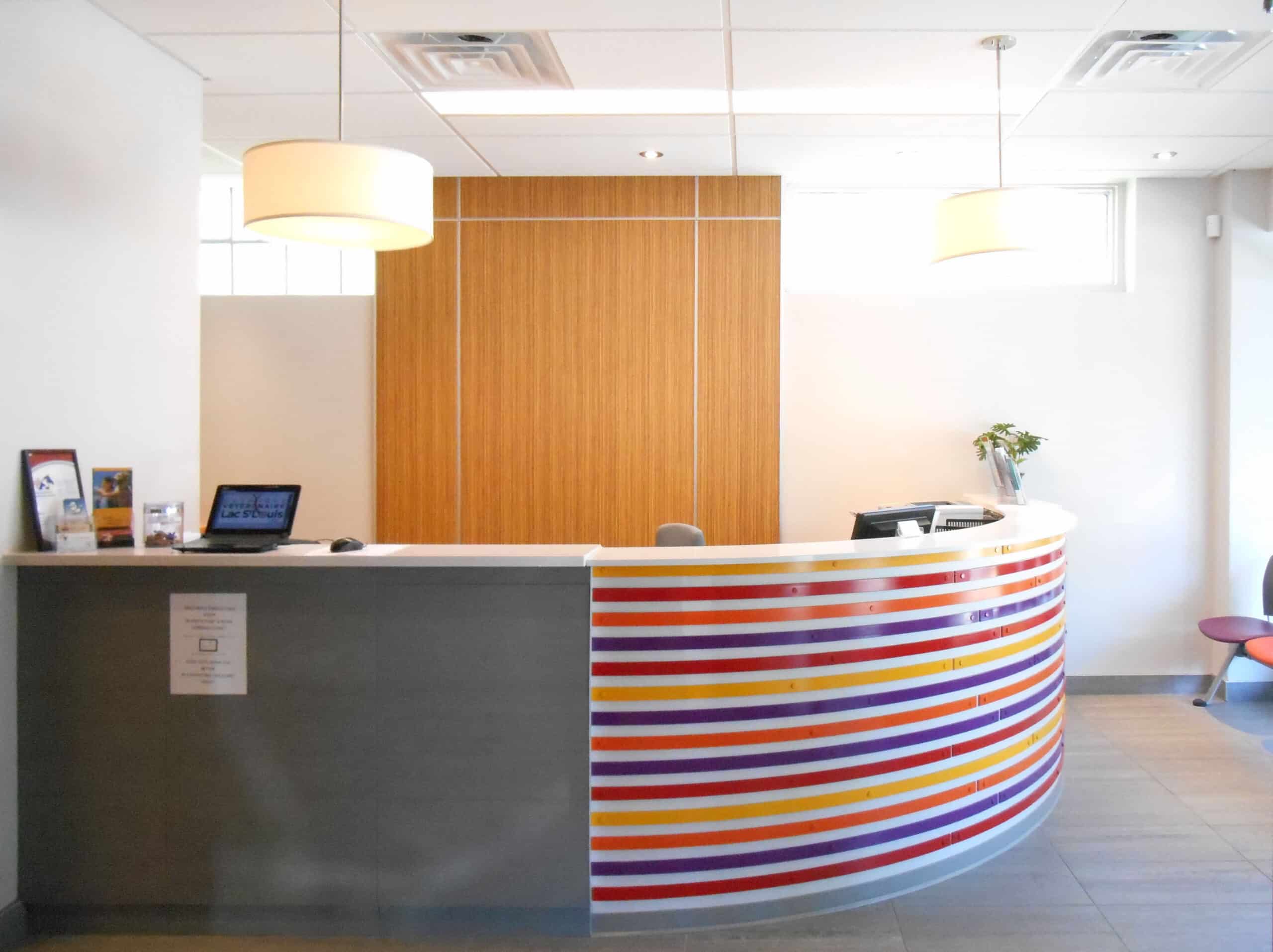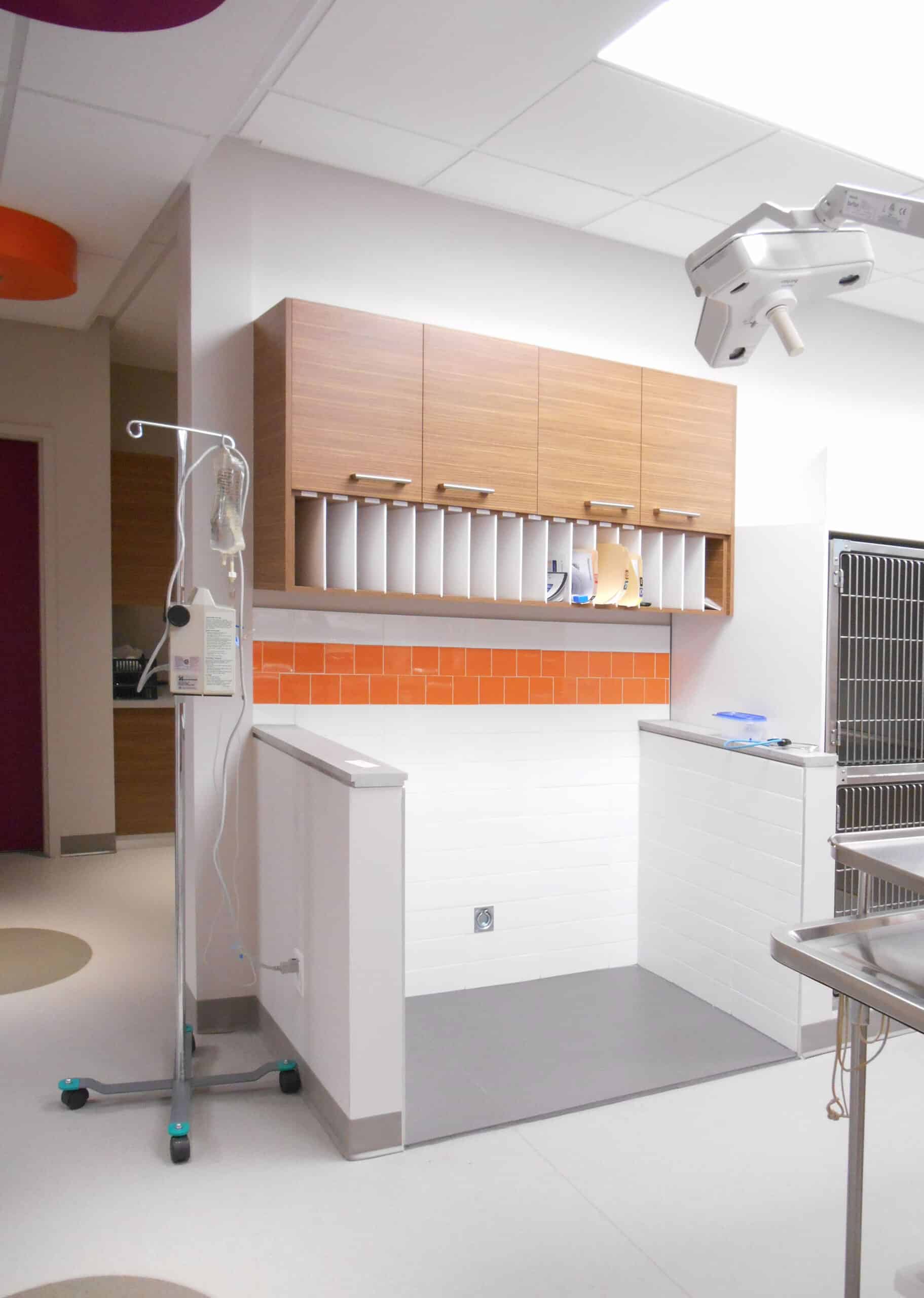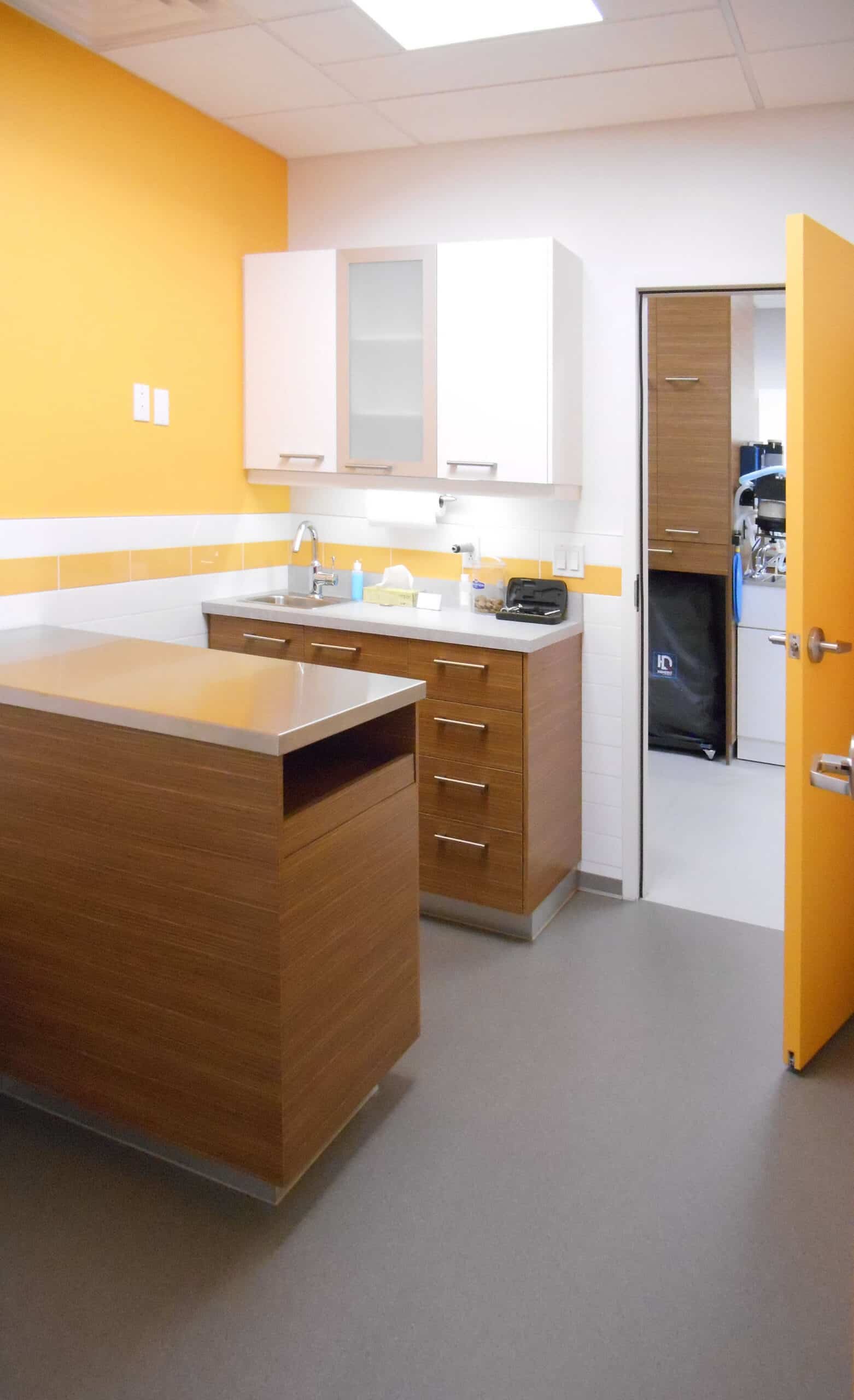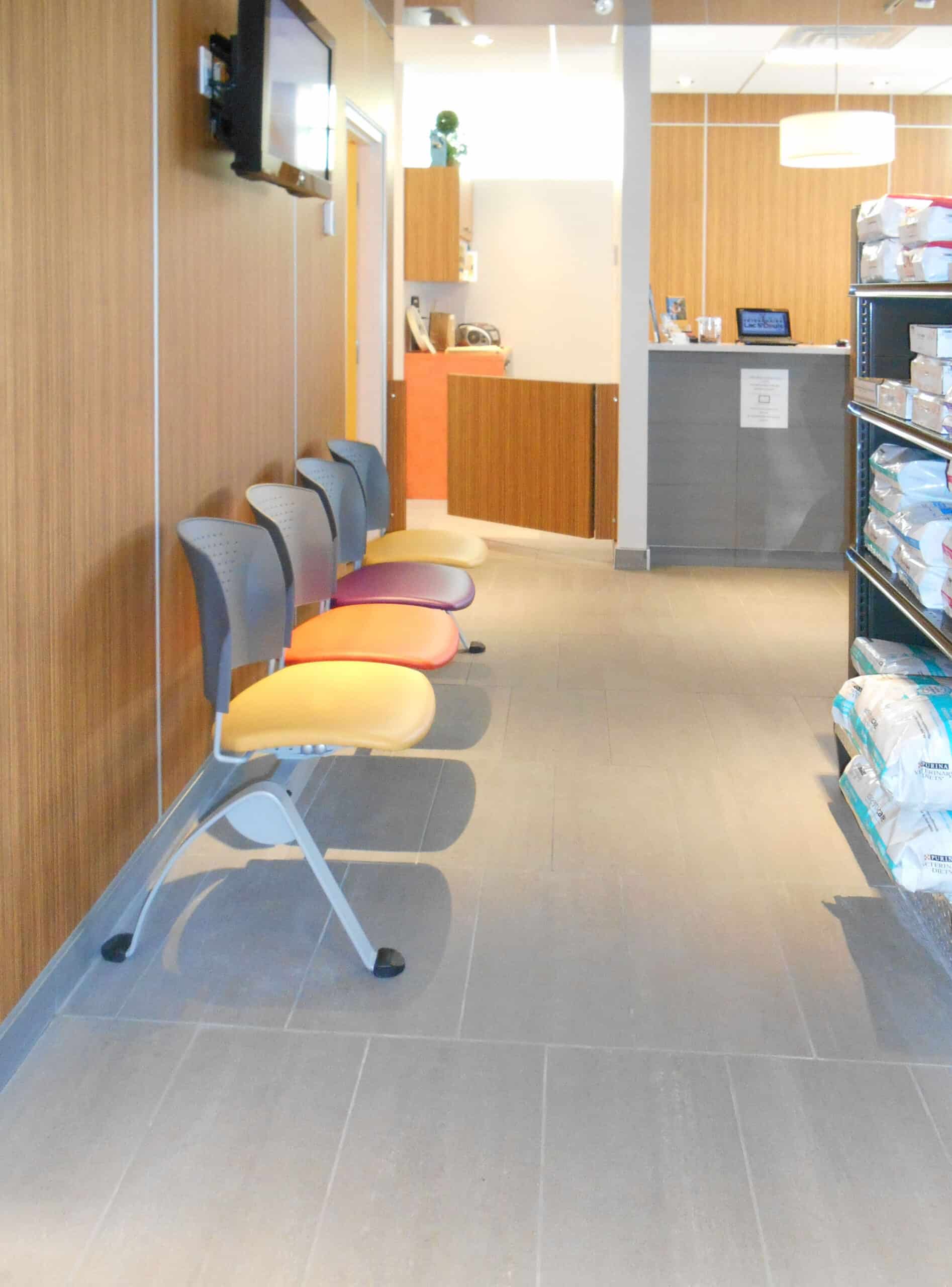 Pour l’aménagement de cette clinique vétérinaire, nous avons offert un service de design intérieur complet : planification de l’agrandissement de la clinique, choix des matériaux, préparation des plans techniques de construction, préparation des plans d’ébénisterie et suivi du projet lors de la construction.