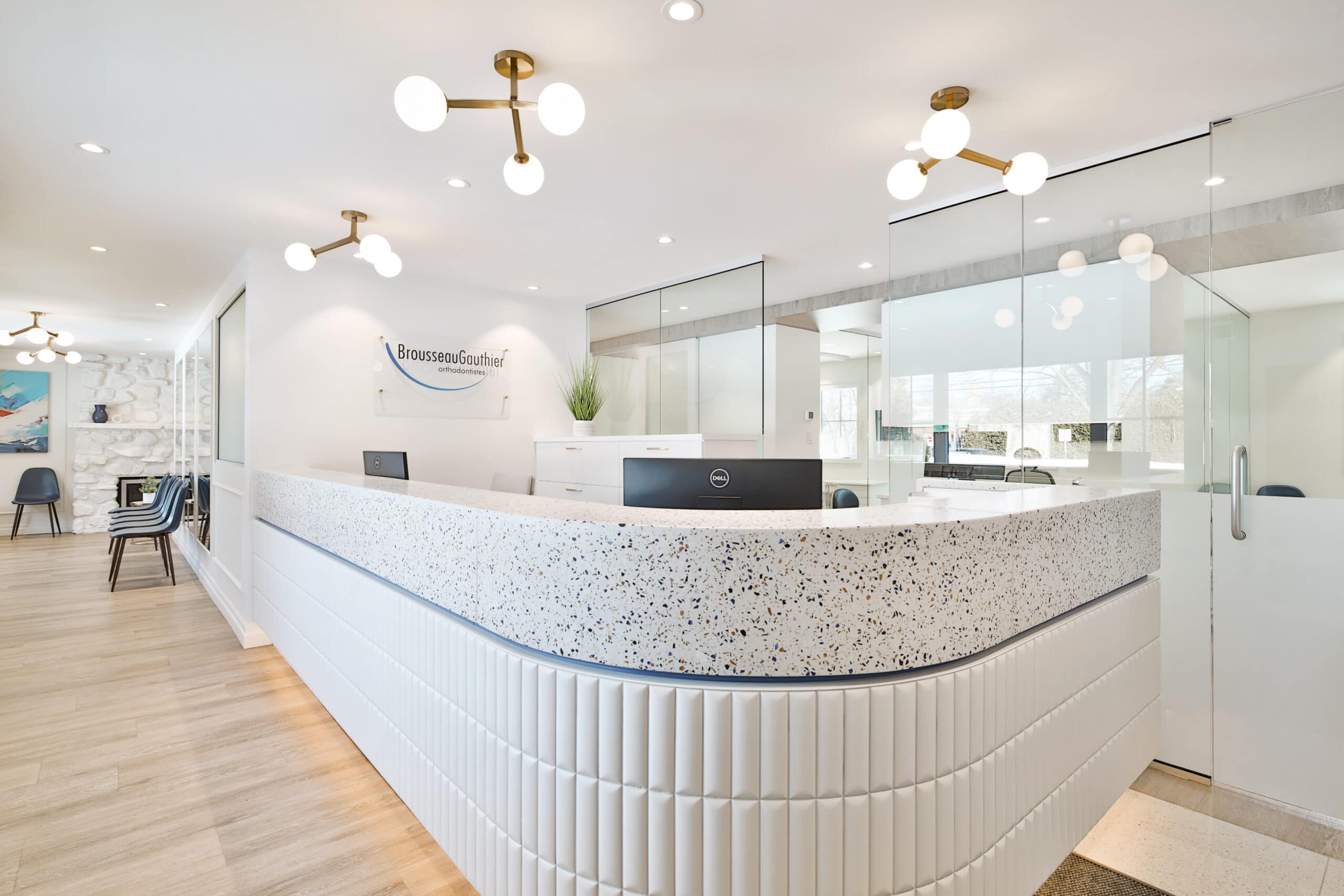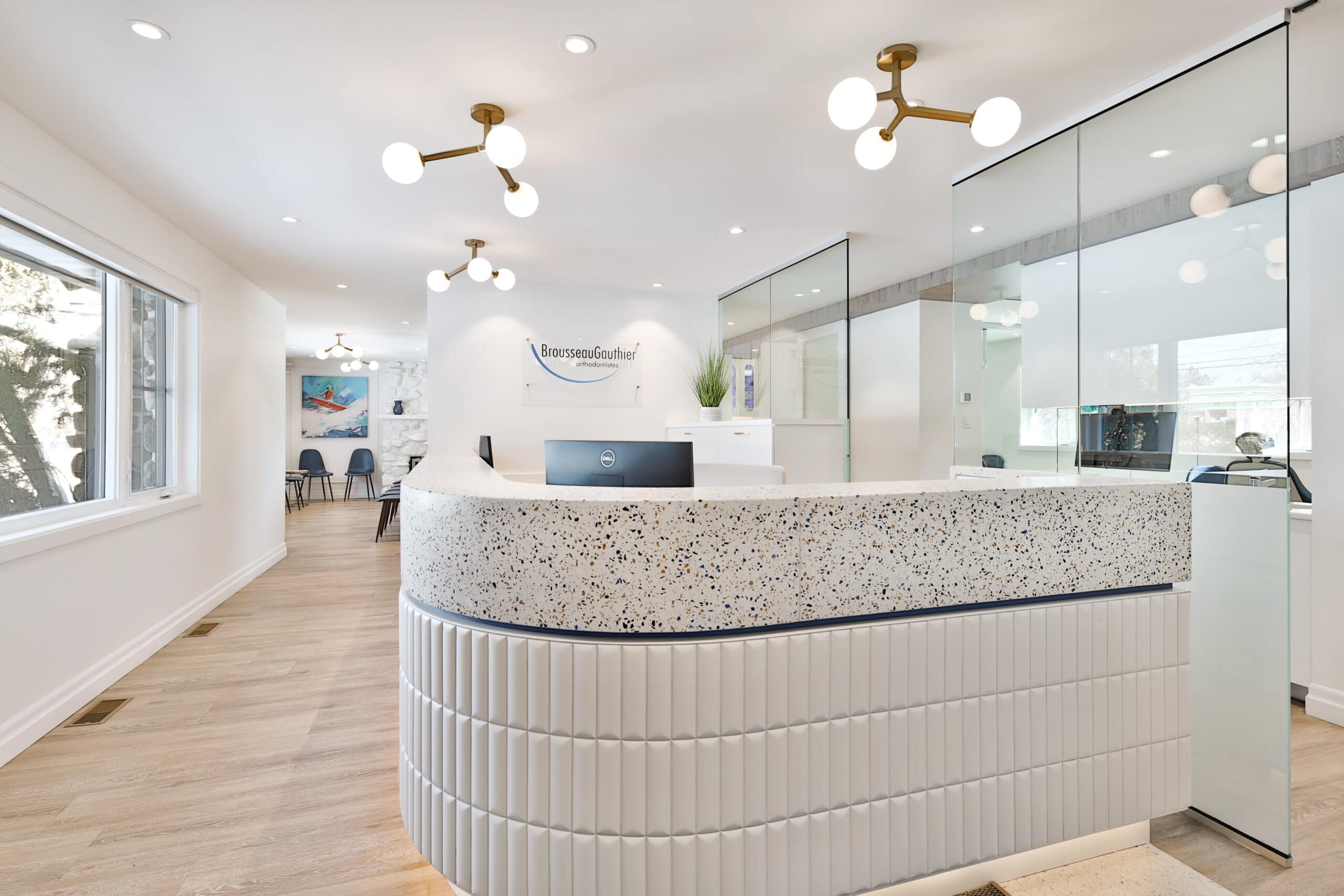 Les orthodontistes de la clinique d’Orthodontie Brousseau Gauthier, ont fait appel à nos services afin de rénover entièrement leur clinique. Le problème majeur de la clinique était le manque de lumière naturelle dû au nombre limité d’ouvertures et aux couleurs sombres utilisées pour les murs et le mobilier. Un autre point auquel nous avons dû penser était l’étroitesse de la salle d’attente.